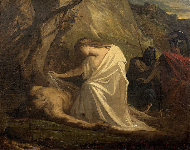 This is the essential: to understand the inseparability of the Two, Antigone and Creon. And to give to the voice of both its full ‘homicidal’ power. The two are absolutely necessary to one another: metaphysically foreign to any personal hatred, unstoppable in ‘bringing themselves death’,[6] they thereby incarnate the essence of tragic dialogue. Dialogue is tragic when the distinct dimensions of the Word meet and confront one another, arriving to the acme of clarity, of self-consciousness, and precisely at this limit-point manifest the powerlessness to understands and accommodate [accogliersi] one another. When two figures confront one another with the most fearful weapon, the word, and both discover themselves to be destined to an inability [impotenza] to hear, there explodes irreconcilable conflict – which signals, however, at the same time, the necessity of their relation. Antigone would not be without Creon, whereas her relation with Haemon is entirely contingent. And so it is with Creon’s relationship with Antigone; the antagonism with Oedipus’ daughter characterises him irreversibly. The words of Creon and Haemon can contradict one another as they interweave – and the possibility, however extreme, of their accord is the Chorus’ hope. Creon and the Chorus mis-understand[7] one another and with all the other personae of the tragedy, first of all, with Tiresias. It is only with Antigone that the dialogue becomes of the purest polemos, confronting principles that are ‘conciliated’ only in reciprocally giving one another death. Certainly, the absolute ‘fidelity’ of both to their own demon does not exempt them from doubt: with her punishment eminent, Antigone asks herself whether, during her suffering, will she be struck with the discovery of her error; and, for Creon, Tiresias’ curse in the finale throws open the abyss that from the start shined through his obstinacy. The tragic hero incarnates her destiny and does what she does in doubt and questioning, never passively. And yet each is able only to insist in their own word, even if it condemns and condemns itself to death. Simone Weil appears, for a moment, to associate Antigone’s doubt (a mere hint, but whose timbre is necessary for it to always be heard) with that of Arjuna in the Bhagavad Gita: it is the doubt that resolves itself in action, according to the tragic sense of dran explained by Snell,[8] in action inasmuch as it is an irredeemable decision that corresponds to the essence of the protagonist. But the hero of the Indian epos finds peace at the end of action according to his dharma, whereas the autonomy of the tragic hero is always manifested in the contradiction with the other than self. Her word gives death only in receiving it. Or rather, she does not live in all her brightness other than for this ‘dialectic’.