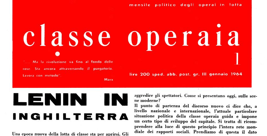 [vii] Tronti later claimed that, for him, the party was always (if tacitly) the PCI. Tacitly, because many members of Quaderni Rossi and of classe operaia came from the Partito Socialista Italiano (most notably, Negri and Panzieri), and elsewhere. It was when Tronti increasingly felt that the turn towards the PCI was increasingly politically urgent, and resisted by most of his fellow editors, that Tronti decided to close classe operaia in the face of widespread opposition.